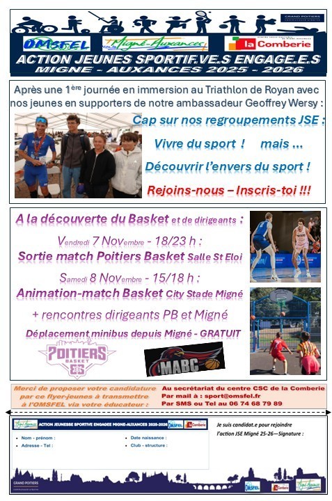 Nous avons même décidé d’ajouter des actions spécifiques ‘’Jeunes sportifs engagés sur Migné-Auxances’’ à cette dynamique intercommunale afin de proposer un continuum sportif, éducatif et citoyen sur 6 mois en 2025 et ce avec un début d’action en février sur la Commune de Migné-Auxances .